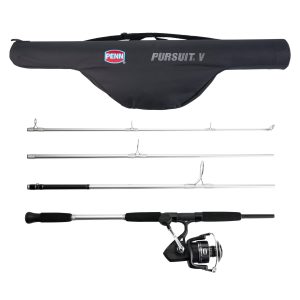 The PENN Pursuit V Travel spinning combo series was built with versatility and reliability at the forefront. with combo pairings for inshore. surf and boat applications. the Pursuit V Travel Combo has you covered for your adventure. The included custom travel case keeps your combo protected whether you are throwing it in your truck or taking it across the world. The Pursuit V reel is factory matched with a strong and sensitive graphite composite rod. paired with PENN’s proprietary one-piece stainless steel Dura-Guides that eliminate guide insert pop outs. one of the most common issues with rod guides. . The reel features the renowned HT-100 drag system and a 4-sealed stainless steel bearing system. ensuring smooth and reliable performance. Wherever your adventures take you. the Pursuit V Travel Combo ensures you’re always prepared to reel in the big one.