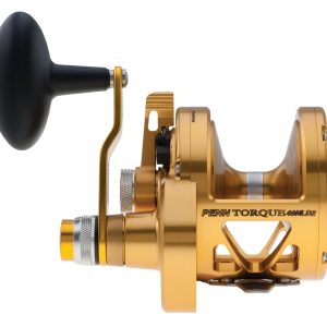 PENN Torque Lever Drag 2-Speed is made in the USA of domestic and imported components. and features an open top design with a machined and anodized aluminum body and sideplates. along with a lightweight forged aluminum spool. Quick Shift 2-Speed system easily shifts into high or low gear. Engineered to provide long lasting PENN durability. the Dura- Drag System virtually eliminates hesitation. even under extreme drag settings.
