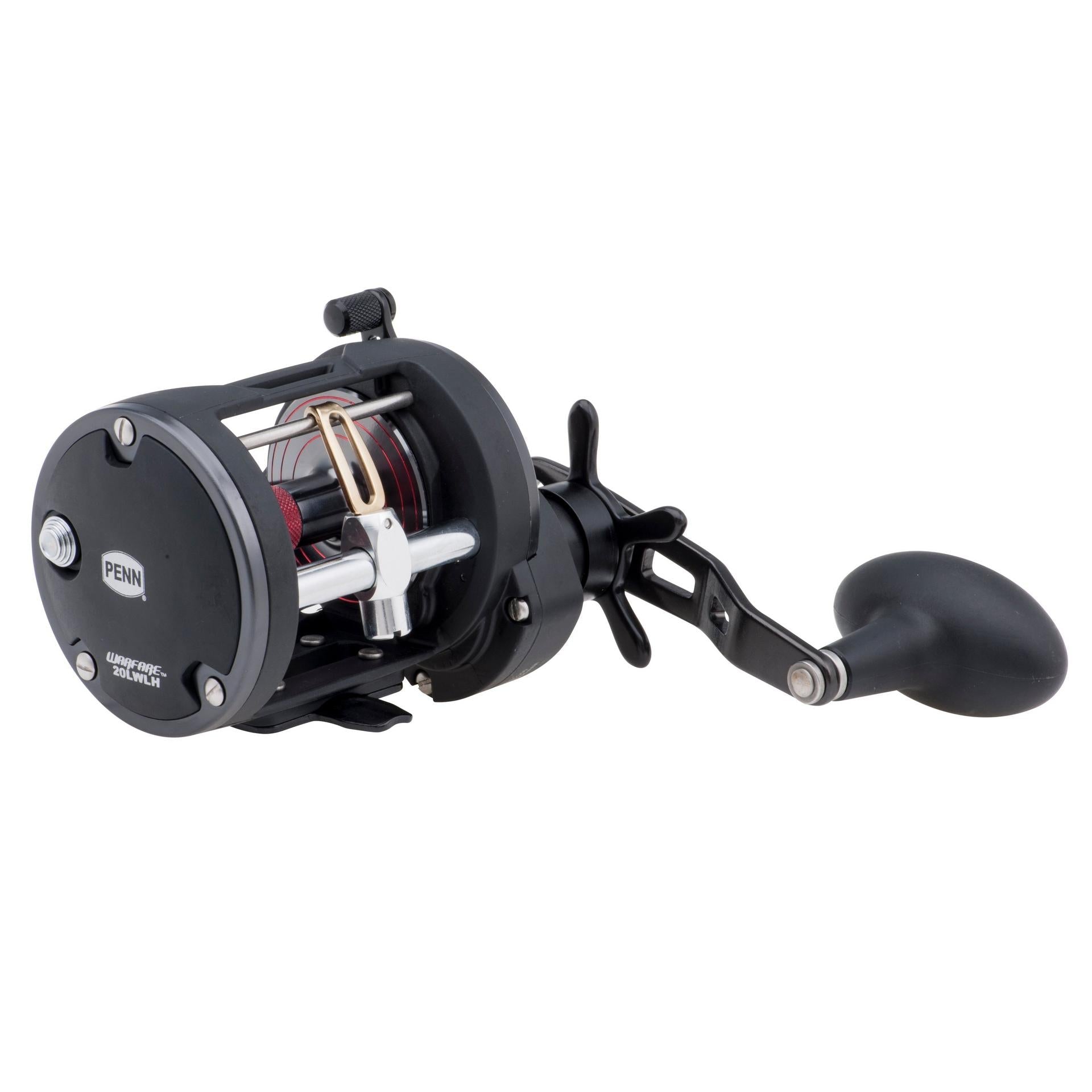 The PENN Warfare Star Drag Level Wind Conventional Reel was engineered to be an extremely versatile all-aroundreel at an affordable price. It features a lightweightgraphiteframe and sideplates with aluminum frame rings forimprovedrigidity to prevent frame-flex.HT-100 drag washers providesmooth drag under heavy loads.Line Capacity Ringseliminate thequestion of how much line you have left when fighting afish.