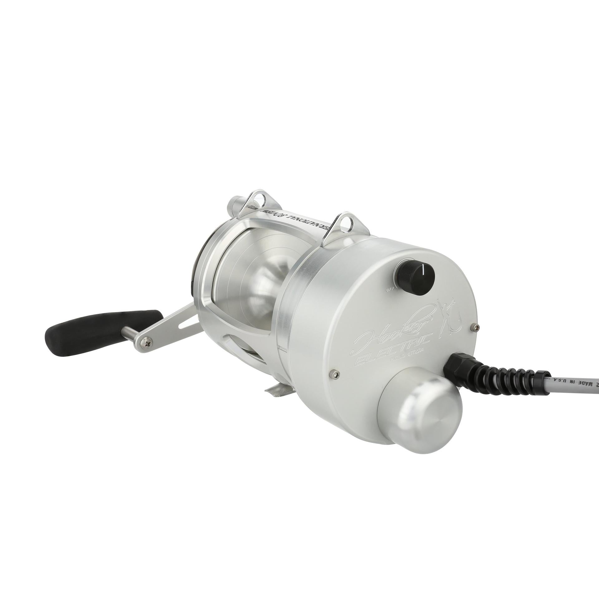 The Hooker Electric PENN International Standard reel can retrieve at speeds of 500 feet per min with full variable speed at the turn of the dial. The motor on the standard reels is permanently attached to the left side of the reel. but the reel handle still works for those that want to fight a fish manually. at the push of a button. Built from Aircraft-grade Aluminum construction right here in the USA. these reels are built tough to last a lifetime. .