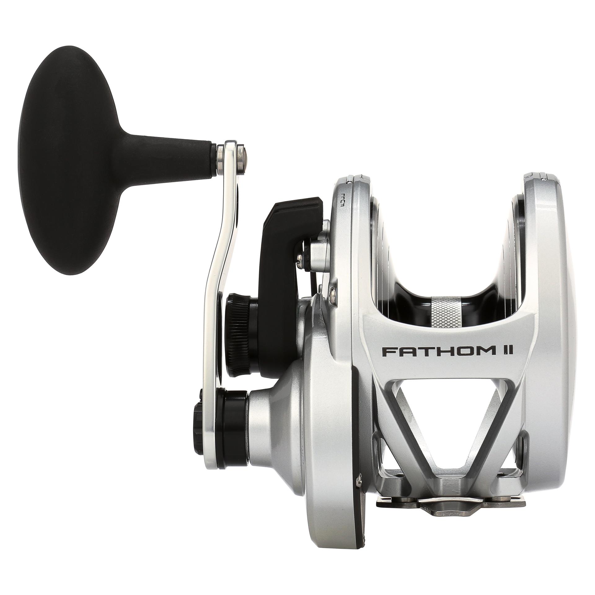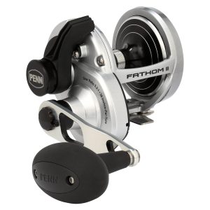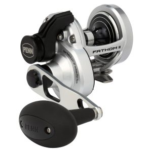 The all-new PENN Fathom II Lever Drag reels take a class-leading reel andraise the bar even more. New models. sizing. features. and optimized billfish models round out the assortment to give a model for every pplication. Integrating the palm side plate and frame allows the PENN Fathom II Lever Drag reels to be more compact in hand and increases strength. The Pull-to-Turn preset knobs allow the angler to truly set it. and forget it. At the PENN Fathom core is a stainless steel main and pinion gear and a forged and machined aluminum spool for maximum durability.