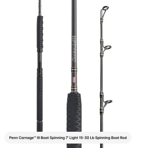 The Slammer IV 5500 Spinning Reel + 7′ Light Carnage III Spinning Boat Rod (15-30 lbs) is a setup built to dominate those powerful saltwater species. The Carnage III’s rugged yet lightweight SLS3 blank delivers unmatched lifting strength for battling hard-fighting fish off the side of the boat. while the Slammer IV’s IPX6-sealed body and Dura-Drag system ensure smooth. reliable performance in the harshest conditions.