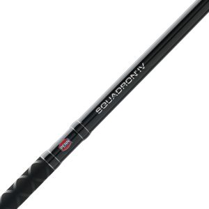 The Penn Squadron IV Surf rods are specifically designed for surf fishing. offering a perfect combination of strength. sensitivity. and performance. They are constructed with a graphite composite blank. providing the right balance of lightweight design and powerful durability to handle the challenges of surf fishing. The rods feature shrink tube handles. ensuring a secure and comfortable grip. even in wet conditions. Penn Dura-Guides are incorporated for smooth line flow and added durability. reducing wear and improving casting performance. The graphite reel seat provides a firm and lightweight base for securing the reel. enhancing overall rod balance. Built for performance. the Penn Squadron IV Surf rods offer an exceptional fishing experience for surf anglers.